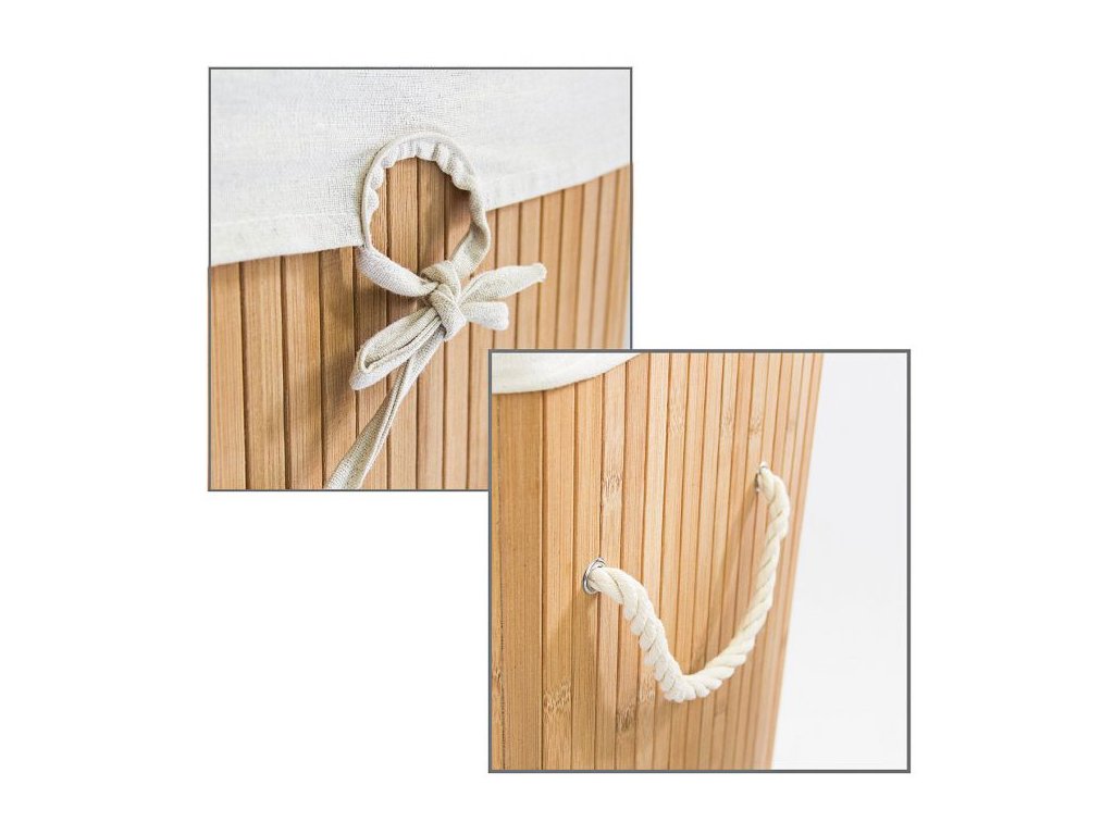 Pěkný a prádelní praktický koš Vám pomůže udržet pořádek v domácnosti. Je vyroben z bambusových štěpů a hodí se nejen na špinavé prádlo, ale i na hračky, boty apod. Koš má velký objem, avšak dá snadno složit a uskladnit. Použitý bambusový materiál mu propůjčuje příjemný, přírodní vzhled, a koš se tak bude hezky vyjímat i v předsíni nebo v obývacím pokoji. Vnitřní prostor koše je opatřen vyjímatelným textilním vakem, který jednoduše vytáhnete i s jeho obsahem a v případě znečištění ho vyperete se špinavým prádlem.