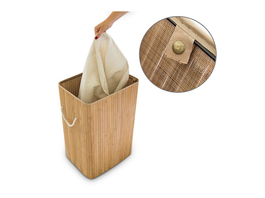 Bambusový prádelní koš s vyjímatelným vakem pro snadné čištění. Do koupelny, obýváku i šatny.