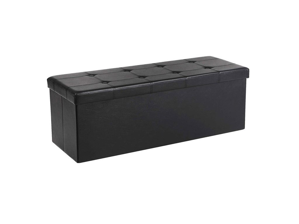 Úložný polstrovaný taburet, stolička i skladovací box v černé barvě. Lze využít také jako konferenční stolek. Vhodný do předsíně, ložnice i šatny.
