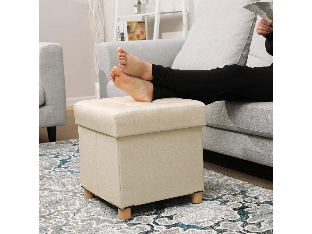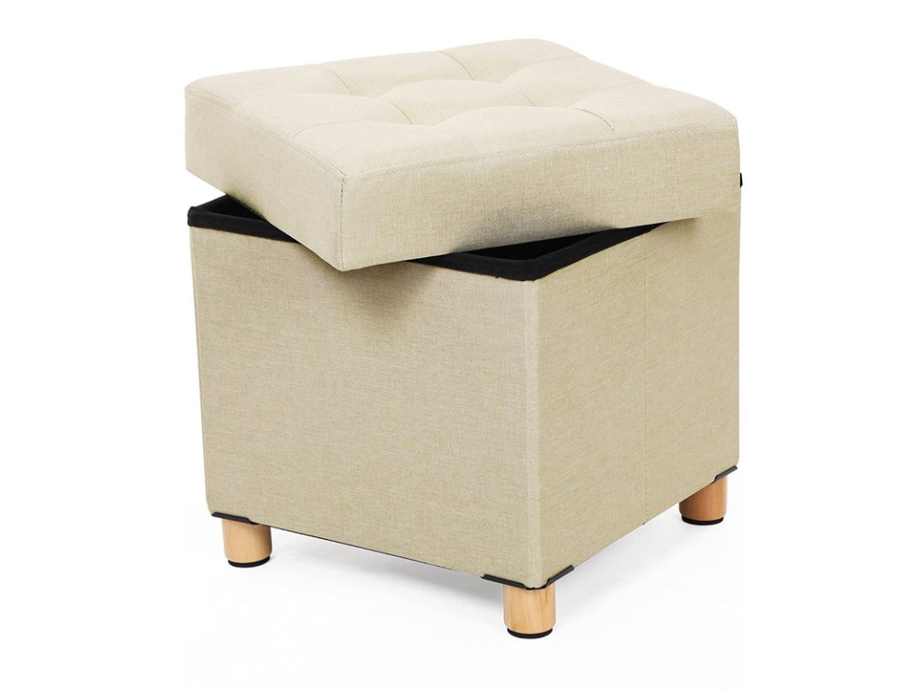 Čalouněný taburet s úložným prostorem a nožičkami | béžový