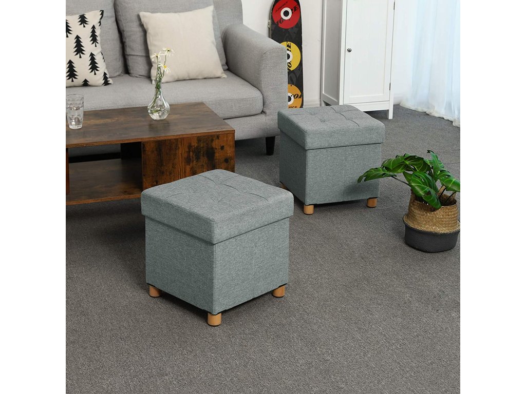 Čalouněný taburet s úložným prostorem a nožičkami | světle šedý