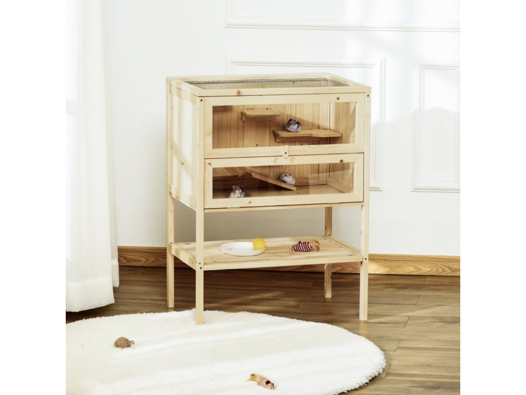 Naše vysoce kvalitní dřevěná pro králíka, zakrslého králíka, morče, křečka či jiné malé hlodavce. se hodí do jakékoliv domácnosti. Zvířátka mohou přebíhat mezi jednotlivými úrovněmi po rampách. Klec je vybavena odklopnou stříškou a dvířky.
