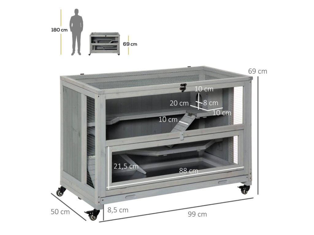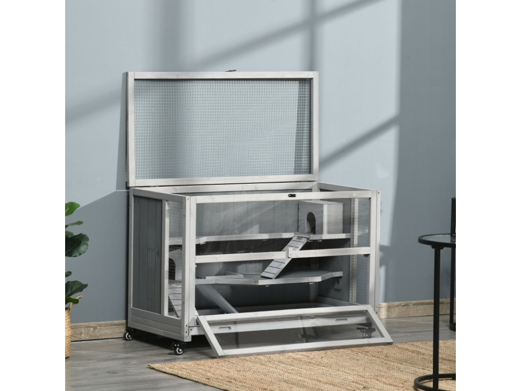 Dřevěná klec pro hlodavce 99 x 50 x 69 cm | tmavě šedá