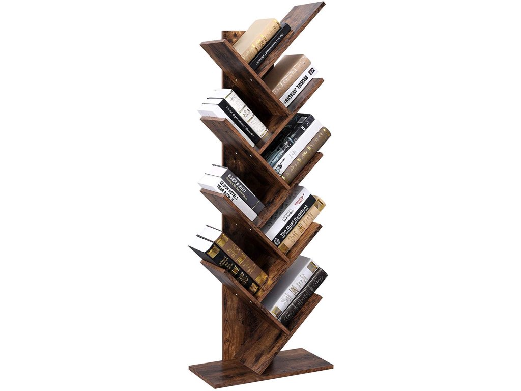 Industriální dřevěná knihovna s 8 policemi | hnědá