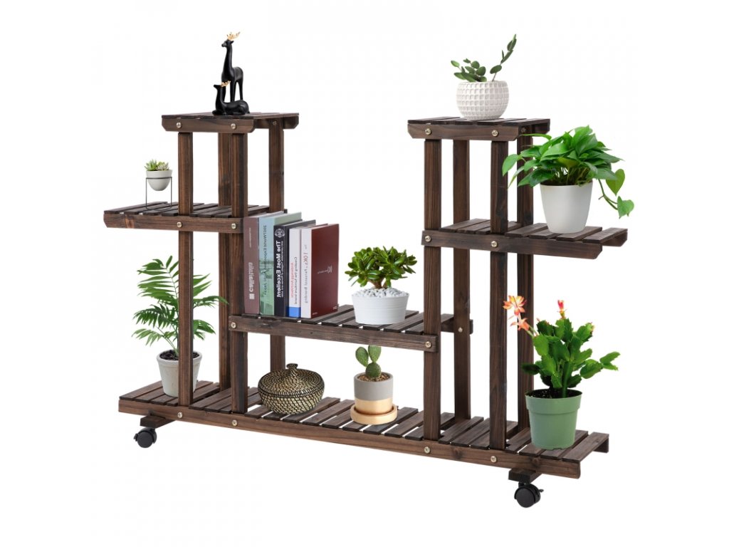 Dřevěný stojan na květiny s policemi 120 x 80 x 80 cm