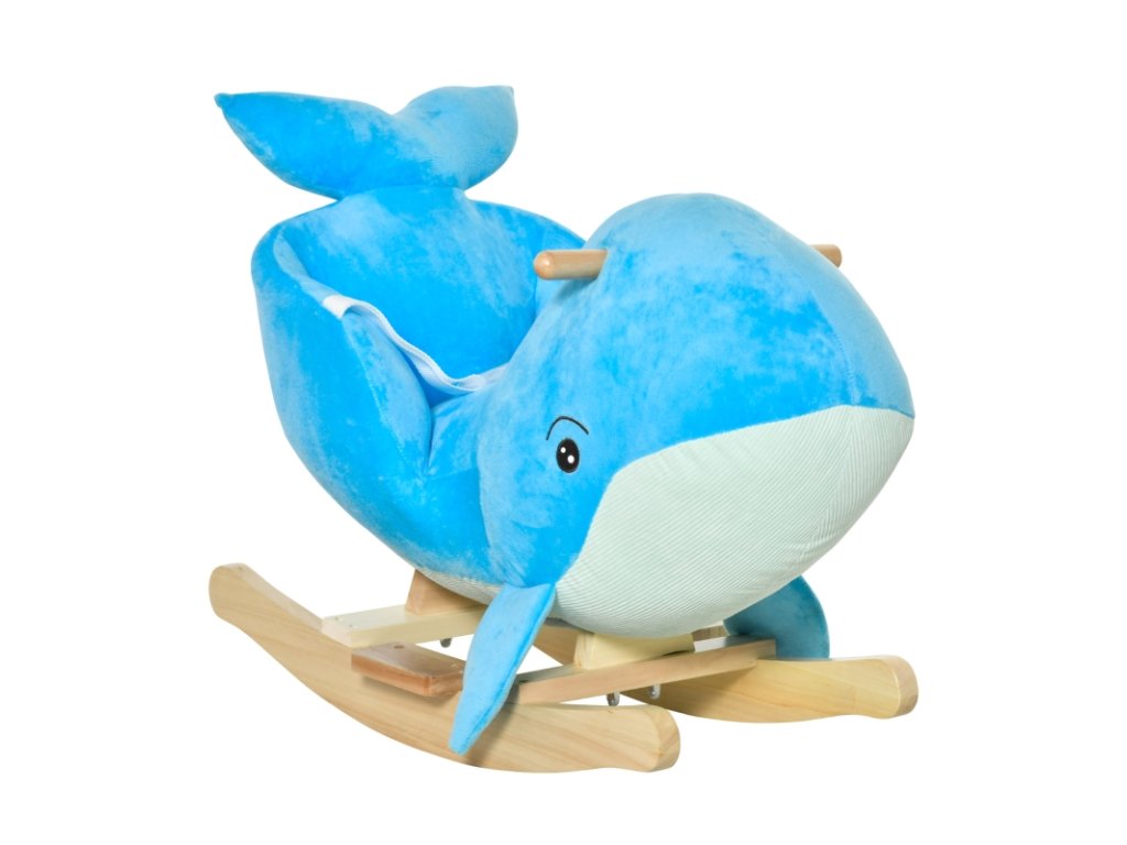 Dřevěná houpačka z kvalitního plyše. Po stisknutí ouška hrají příjemné melodie. Rozměry 63 x 38 x 63 cm.