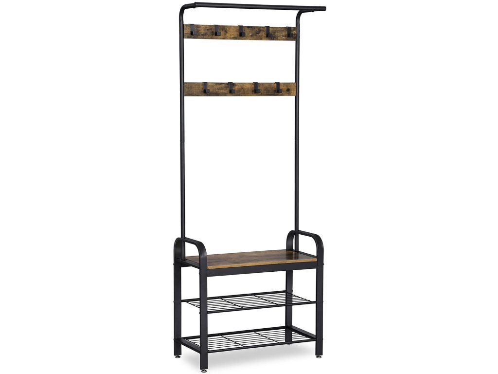 Industriální botník s věšákem Oliver | černý