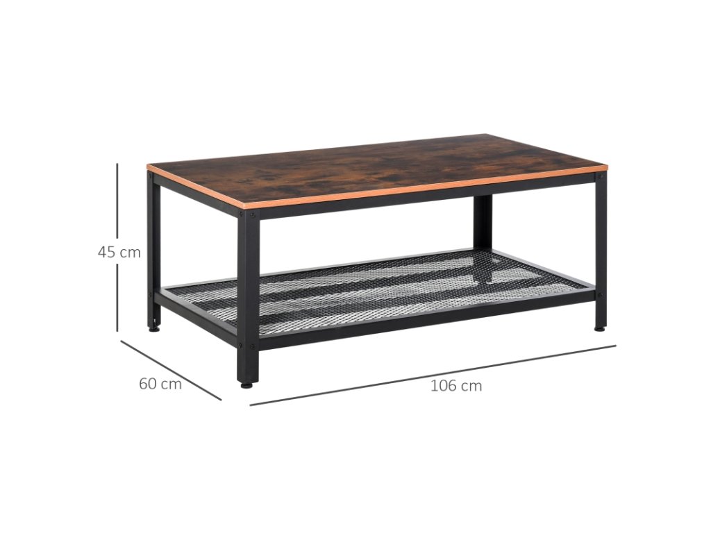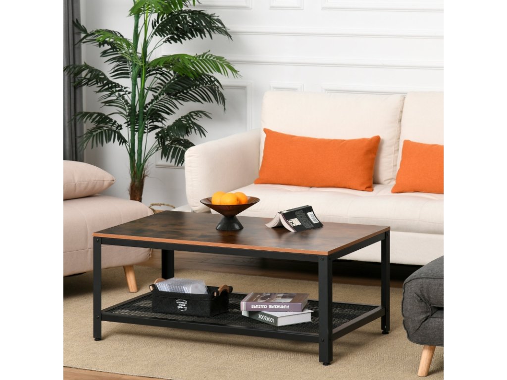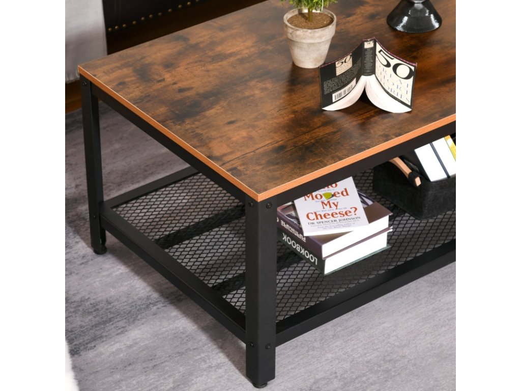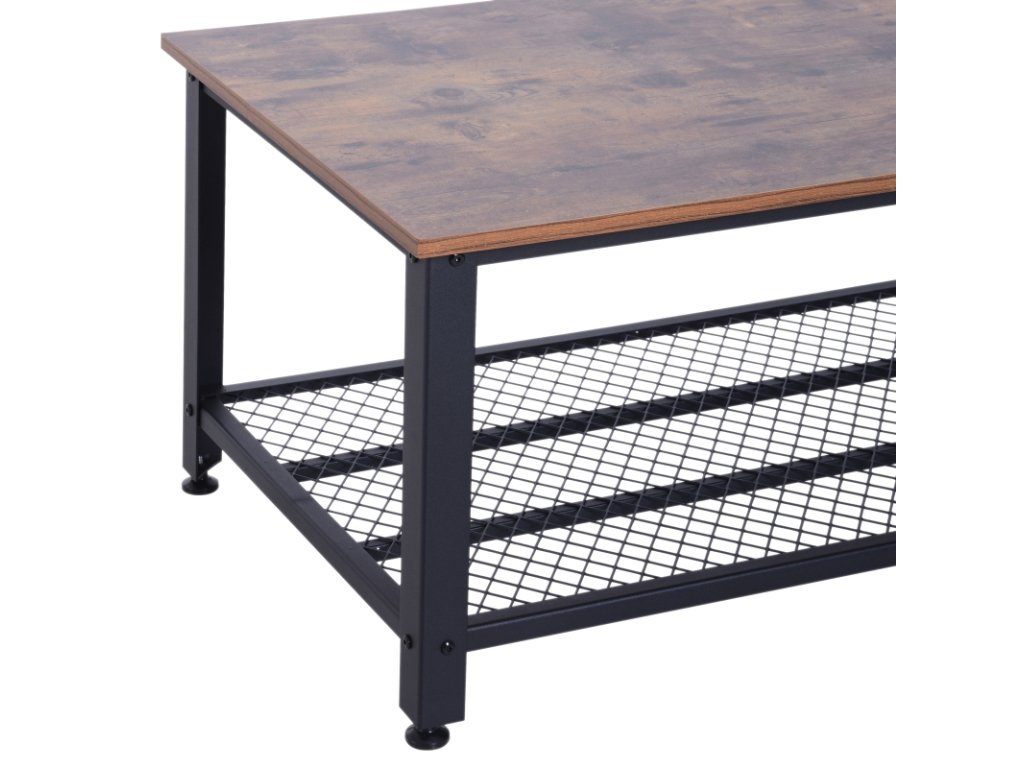 Elegantní konferenční stolek dodá vašemu interiéru osobitý nádech. Kombinace rustikální hnědé a černé železné konstrukce propůjčuje tomuto konferenčnímu stolku průmyslový, ale i starobylý vzhled. Starožitný design tohoto stolku vytvoří útulnou atmosféru k posezení s rodinou a přáteli a zároveň poskytne další úložný prostor na knihy, časopisy, dekorace, dálkové ovládání. Lze jej využívat jako konferenční stolek v obývacím pokoji nebo jako odkládací stolek ve vstupní hale, předsíni, ložnici.