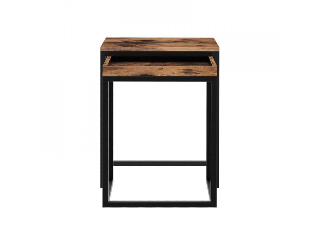 Odkládací stolek v industriálním designu. Kovový rám a MDF deska s rustikálním dekorem.