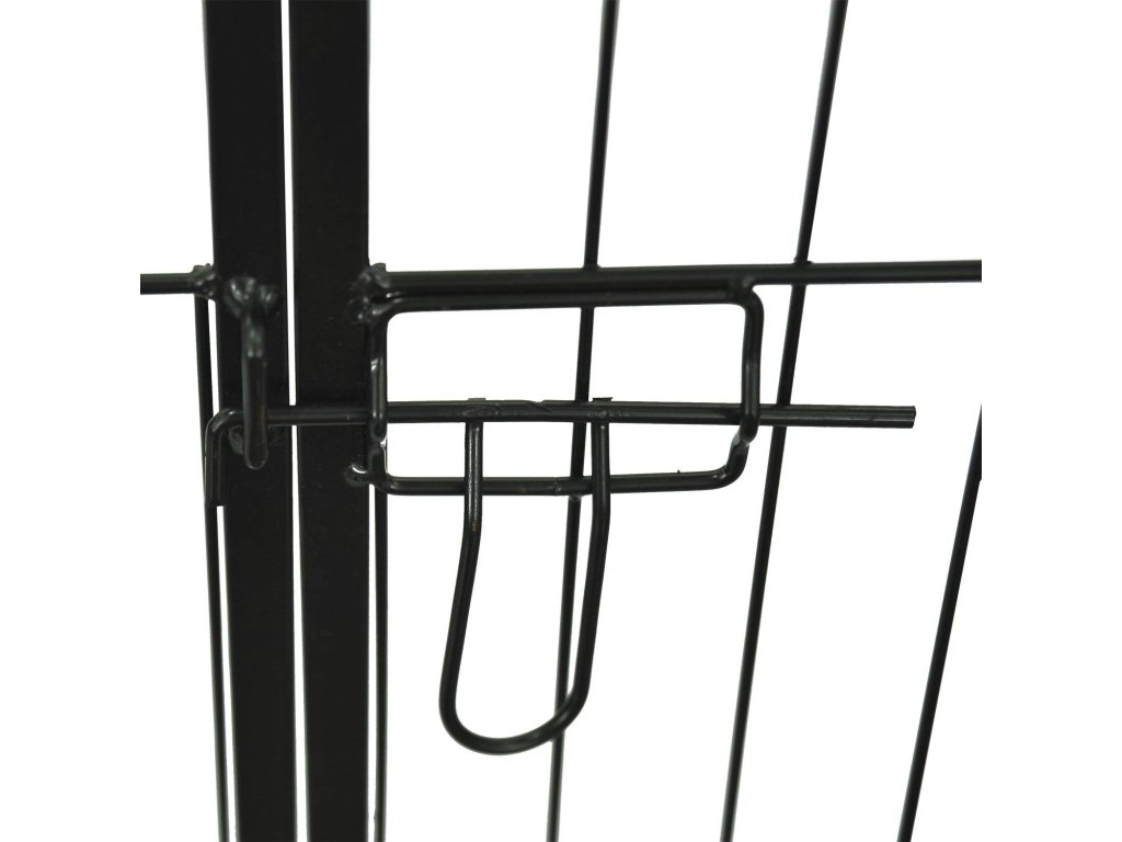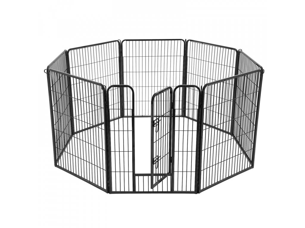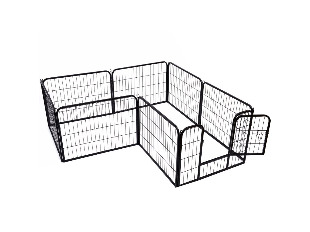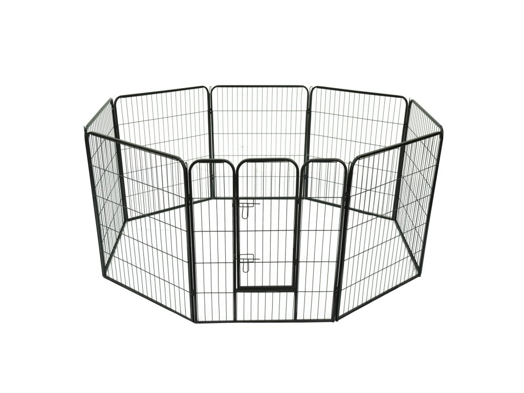 Tato velmi kvalitní zahradní 8 dílná ohrádka pro psa se stane velmi užitečným vybavením pro chov Vašich psích miláčků. Zvláště štěňata, která vyžadují Vaši neustálou pozornost, poskytne tento kovový kotec dostatek prostoru pro bezpečnou hru i odpočinek. Takže náš mobilní kovový výběh pro pejsky poskytne odpočinek i Vám. Plotové díly, včetně jednoho dílu s brankou, se velice snadno dají sestavit do osmistranného, obdélníkového či mnohoúhelníkového půdorysu. Moduly ohrádky jsou spojeny provlečenou kulatinou navařenými panty. Stejně tak rychle lze díly rozložit vytáhnutím spojovacích tyček a ohrádku uskladnit nebo naložit do auta.