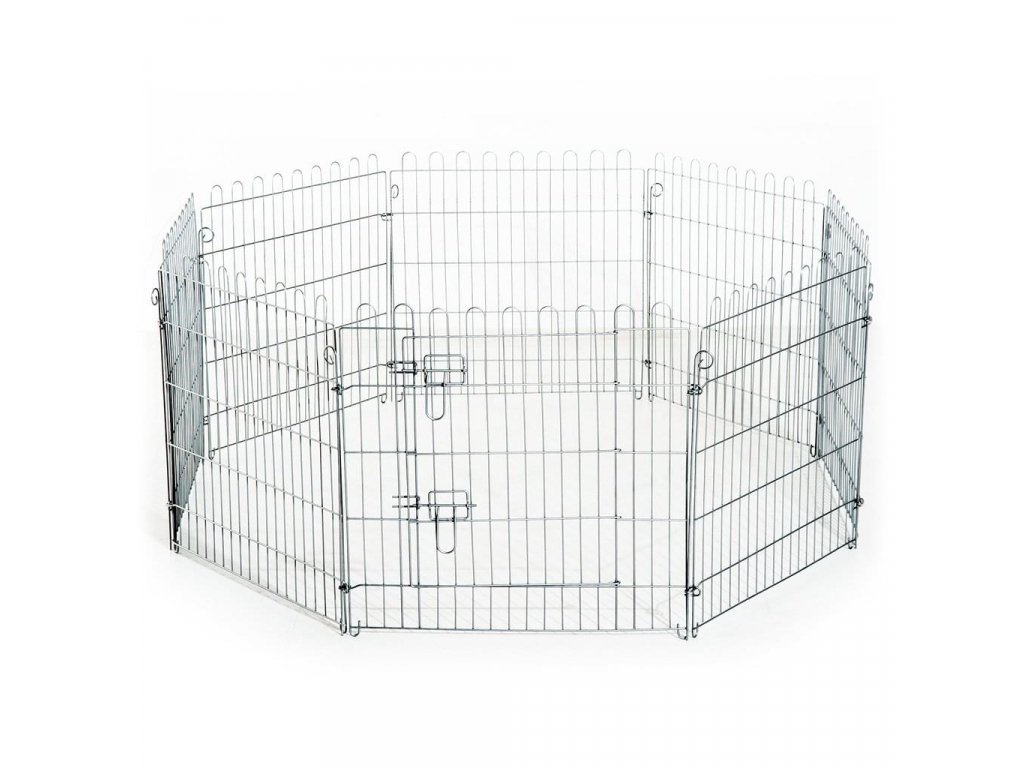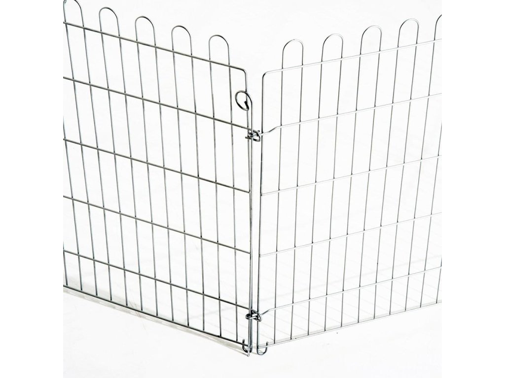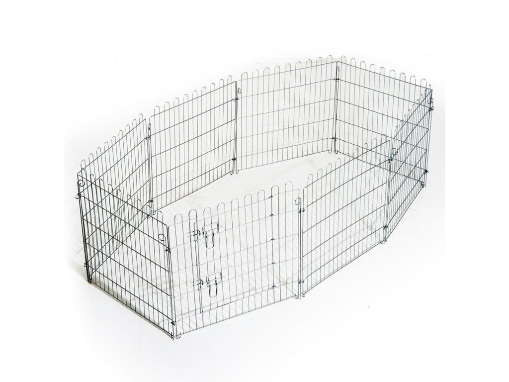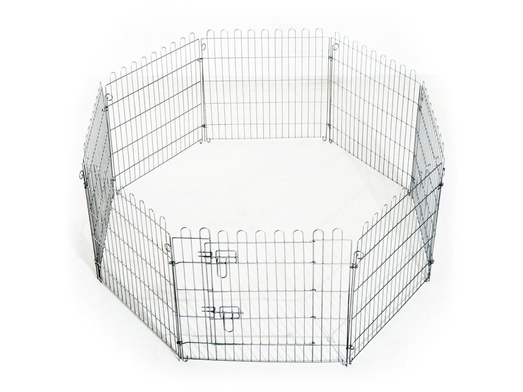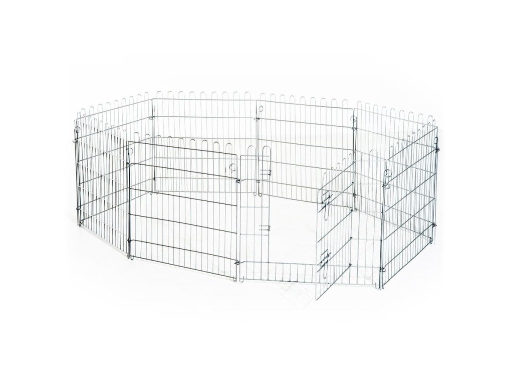Venkovní výběh umožňuje štěňatům si bezpečné hrát na čerstvém vzduchu. Kovový výběh pro pejsky, který je vyrobený z kovu je vysoce kvalitní a poskytuje v každém okamžiku optimální přívod vzduchu. Zahradní výběh pro psa je složen z 8 dílů, které lze snadno a rychle variabilně smontovat a demontovat. Snadno se čistí.