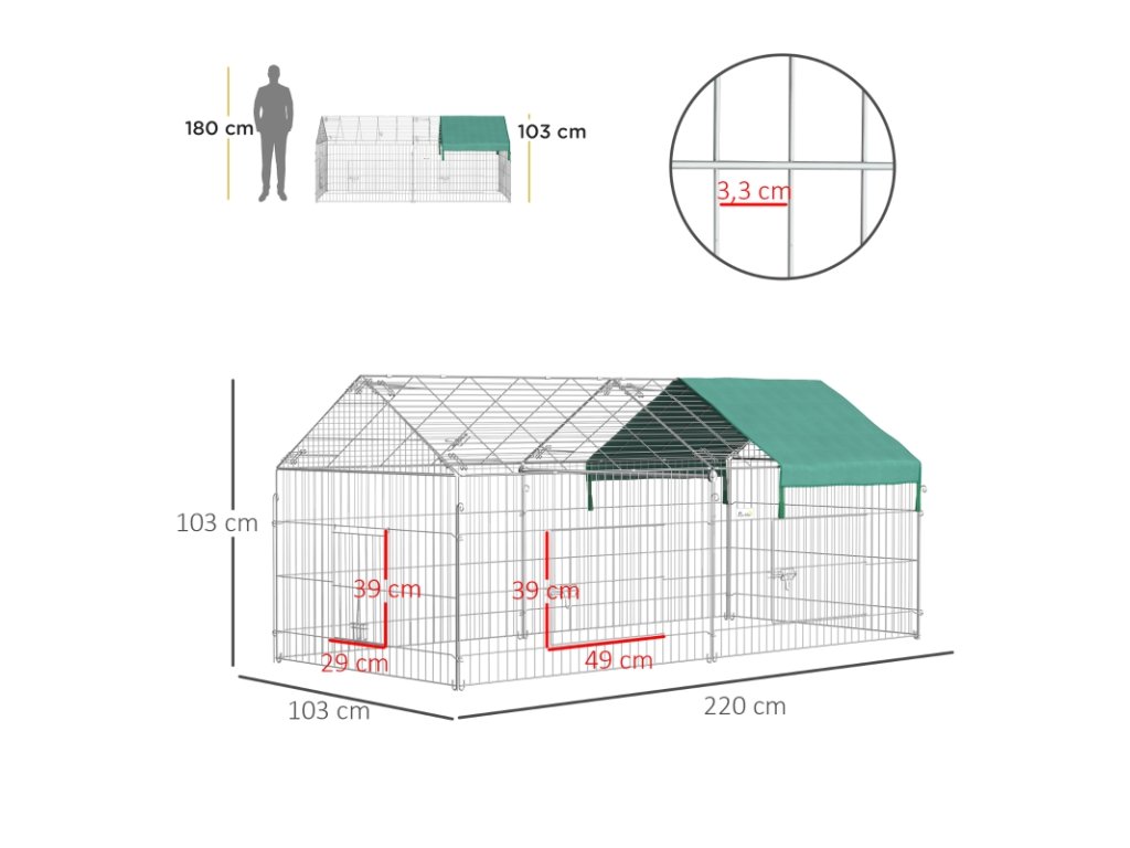 Kovový výběh ohrádka se stříškou pro králíky, morčata a jiné hlodavce 220 x 103 x 103 cm