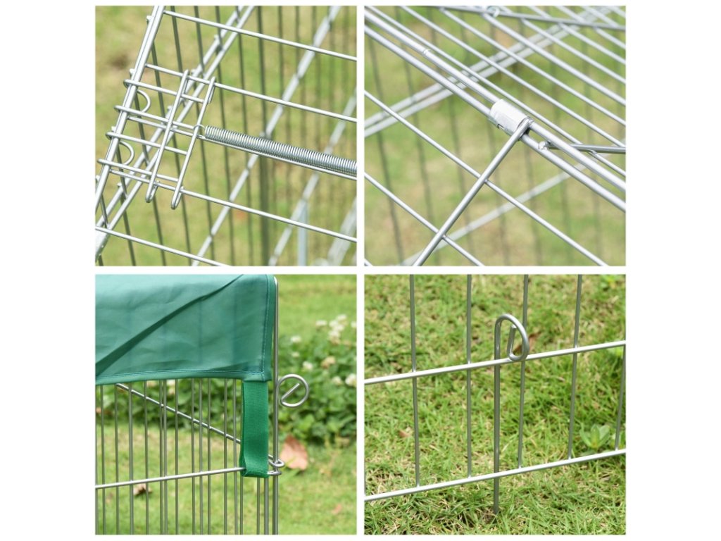 Tato velmi kvalitní ohrádka pro králíka, morče, či jiné hlodavce se stane velmi užitečným vybavením. Optimální velikost mezer mezi dráty zabraňuje králíkovi se podhrabat a rovněž tvoří efektivní ochranu pro zvířata uvnitř výběhu před napadením psy, kočkami, kunami, ale i dravci.