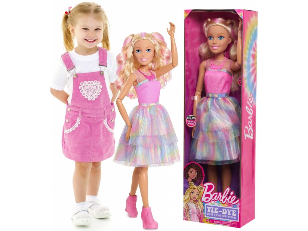 Mattel Barbie Velká blonďatá 70 cm v módní barevné kravatové kreaci pohyblivé ruce a hlava