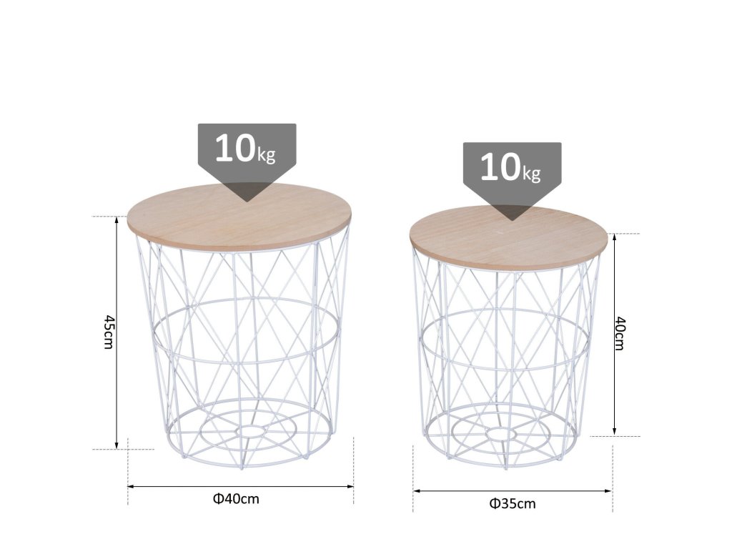 Odkládací konferenční stolky zaujmou a uspokojí všechny ty, kteří touží nejen po zajímavém originálním designu, ale také praktičnosti. Stolek je složen z odnímatelné desky a kovové drátěné podnože geometricky spletené do podoby koše, která je nejen vizuálně zajímavá, ale rovněž funkční. Po odejmutí desky stolu lze jeho spodní část využít jako úložný prostor na jakékoliv nezbytnosti.