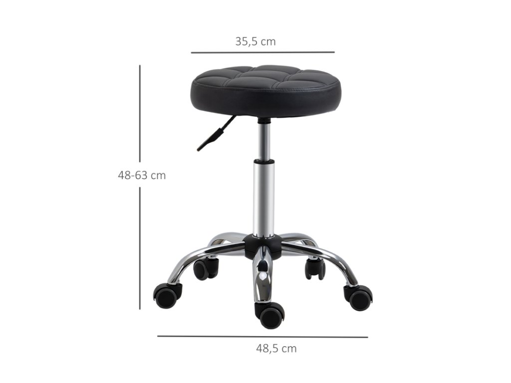 Lehká a přitom stabilní kadeřnická - kosmetická stolička v klasickém designu v sobě snoubí pohodlí, praktičnost a styl. Stolička je volně otočná o 360 °, výšku lze snadno a plynule nastavit. Polstrování o výšce 8 cm a příjemný povrch zajišťují vysoký komfort sezení. Stolička se snadno čistí a díky svým kompaktním úsporným rozměrům je ideální pro použití v malých prostorách. Stoličku využijete doma, v dílně, provozovně, v kadeřnictví či v kanceláři.