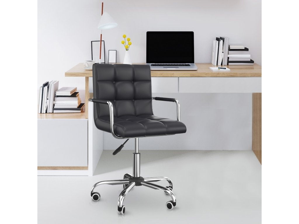 Tato pracovní otočná stolička disponuje chromovaným ocelovým rámem, který ji činí velice pevnou a stabilní. Díky mechanismu s plynovou pružinou je můžete výškově nastavit a otáčet dokola o 360 stupňů. Čalounění z vysoce kvalitní umělé kůže je nenáročné na údržbu a vypadá velmi elegantně. Židlička je vybavena pěti kolečky, takže ji můžete bez problémů přesouvat. Je vhodná do kosmetických, kadeřnických i pedikérských salónů.