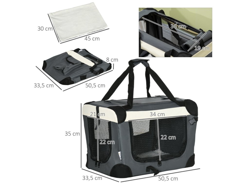 Skládací přepravní taška pro psy do auta 50,5 x 33,5 x 35 cm | šedá