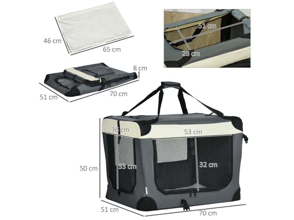 Skládací přepravní taška pro psy do auta 70 x 51 x 50 cm | šedá