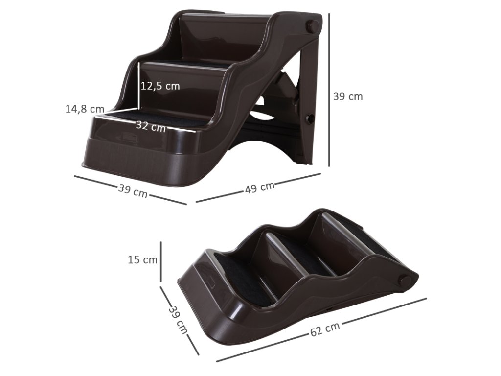Plastové schůdky schody pro psy 39 x 49 x 39 cm | tmavě hnědé