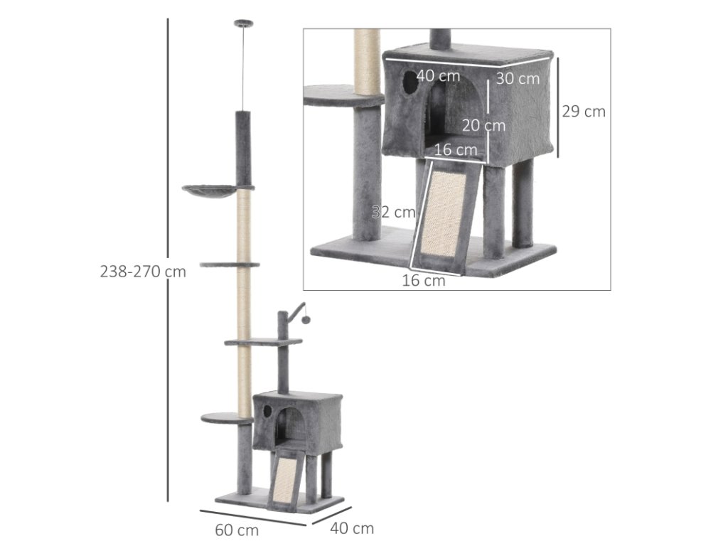 Škrabadlo pro kočky 60 x 40 x 238-270 cm | tmavě šedé