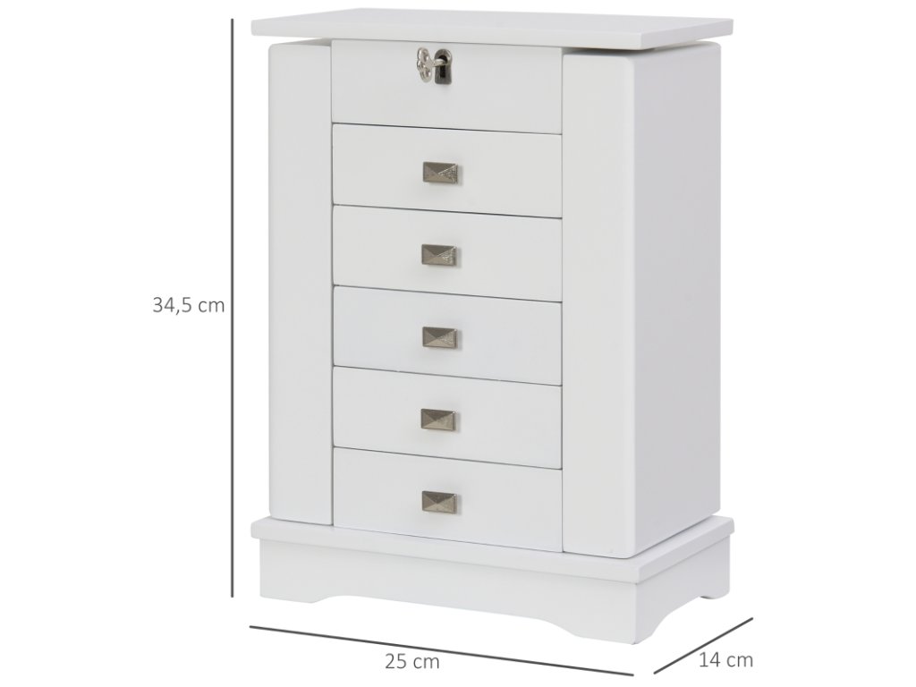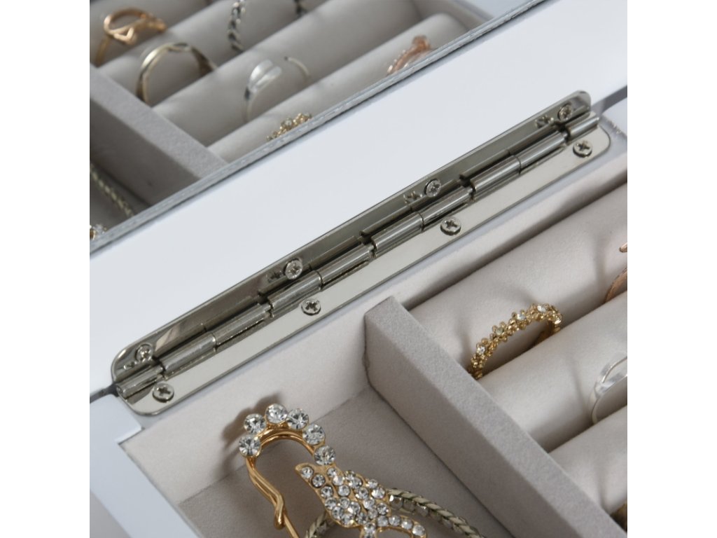 Exkluzivní šperkovnice s jednoduchým a elegantním designem je atraktivní dekorací do vašeho pokoje. Šperkovnice poskytuje dostatečný prostor pro vaše šperky a další drobnosti. Šperkovnice je vyrobena z kvalitního MDF což zajišťuje její odolnost.