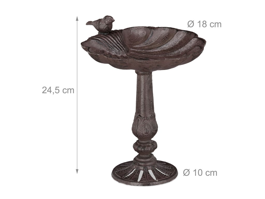 Krásně zdobená ptačí koupel upoutá pozornost na Vaší zahradě, balkóně, dvoře atd. Koupel je důmyslná a ozdobná a dokonale poslouží ptákům ve Vaší zahradě během horkých letních dnů. Ptáci se díky ní budou moci koupat a pít, aby se posilnili. Ptačí koupel je vyrobena z litiny a je odolná vůči vlivu počasí.