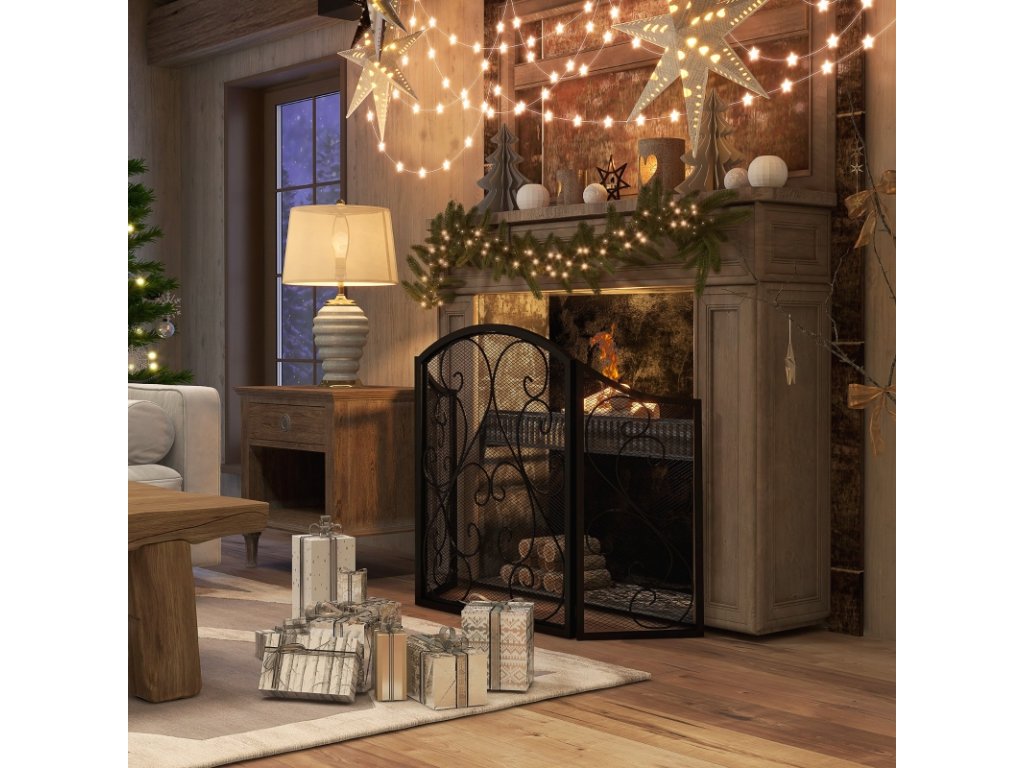 Zástěna ke krbu - zabezpečte váš krb, TV nebo rozdělte místnost na dva díly. Tato prostorová krbová zábrana kolem krbu je postavena během několika minut a je vhodná pro zabezpečení prostoru nejen kolem krbu, ale také jako ohrádka k průchodům či schodům.