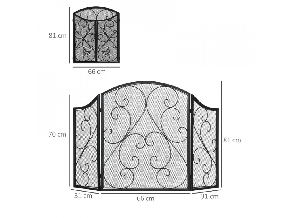 Zábrana ke krbu 128 x 81 cm kovová | černá