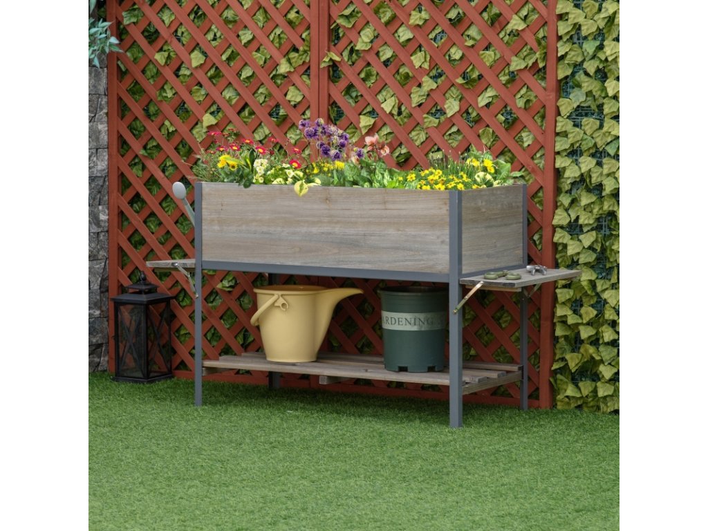 Zahradní dřevěný truhlík se 3 policemi 140 x 46 x 76 cm | šedý