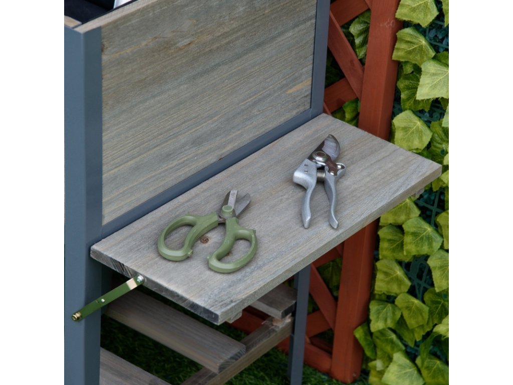 Zahradní dřevěný květináč se 3 odkládacími policemi 140 x 46 x 76 cm | světle šedá