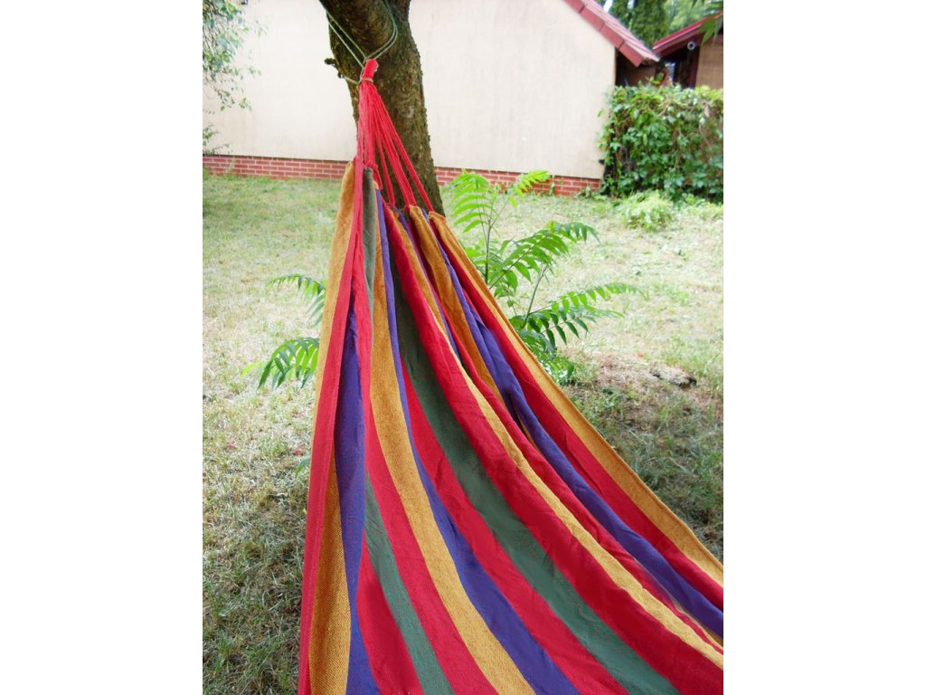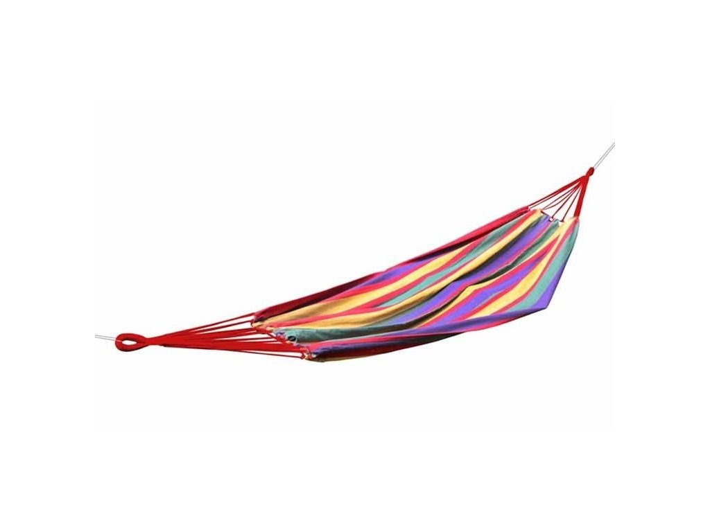 Pestrobarevná venkovní houpací síť pro 2 osoby na zahradu, terasu, dovolenou. Velice snadné zavěšení. Z kvalitního a pružného materiálu. Nosnost 210 kg.