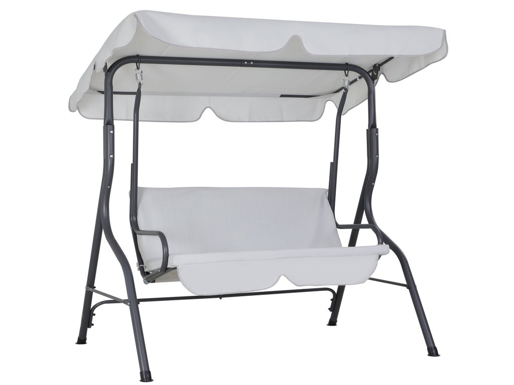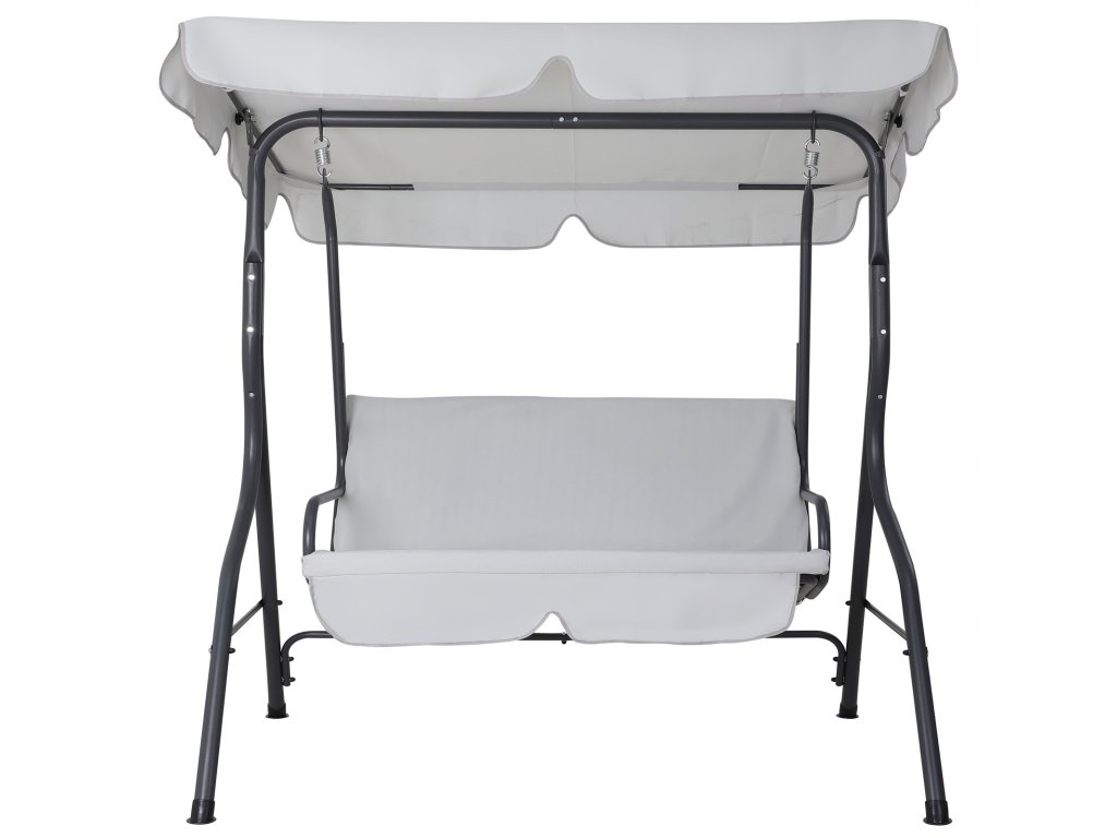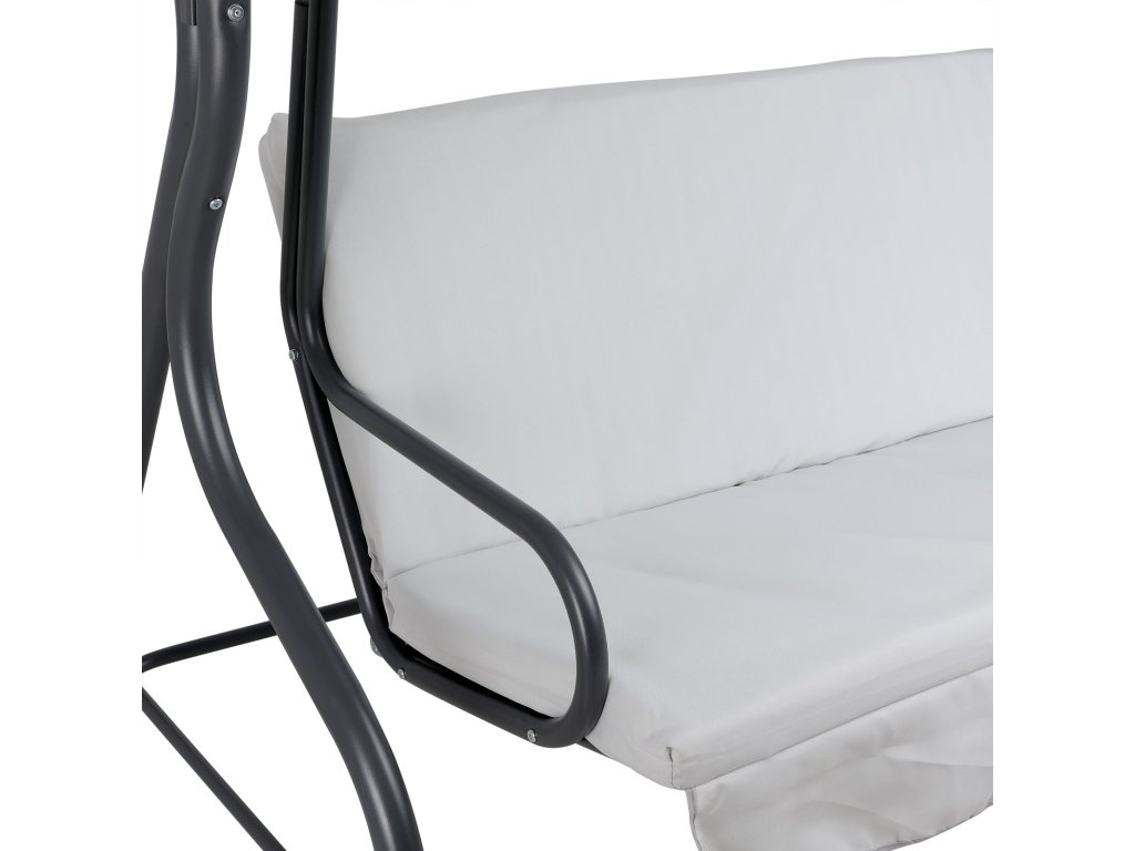 Venkovní zahradní houpačka až pro 3 osoby. Pevná kovová konstrukce. Tmavě šedá barva.