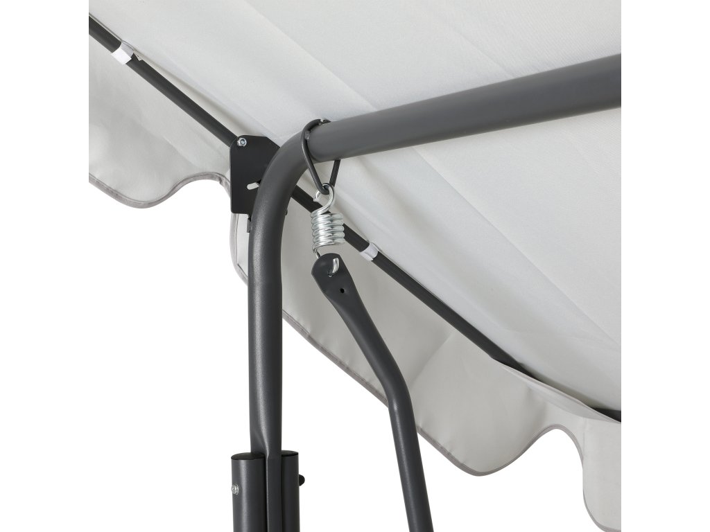 Zahradní dřevěná houpací lavice z tvrdého borovicového dřeva. Se stříškou z odolného polyesteru. Závěsné řetězy z pozinkované oceli. Nosnost 240 kg.