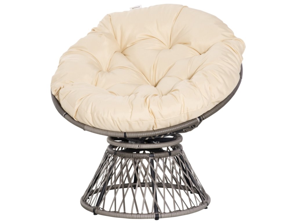 Zahradní ratanové papasan křeslo s polštářem otočné 87 x 97 x 86 cm | krémové