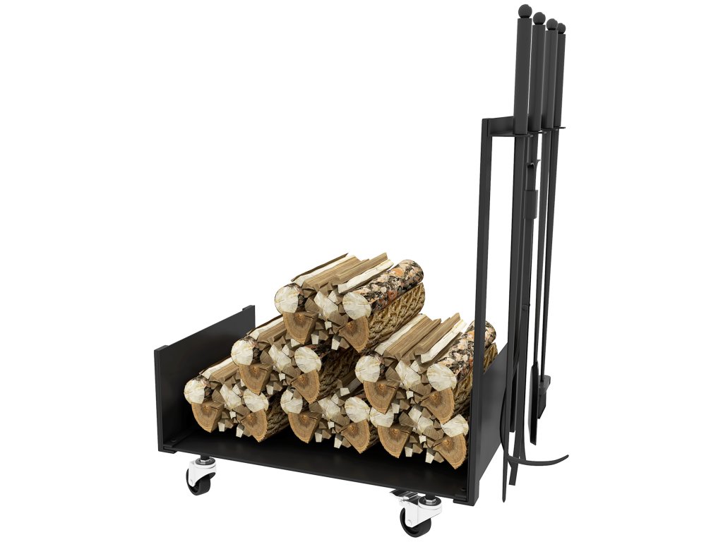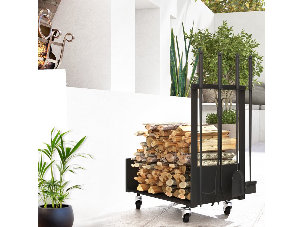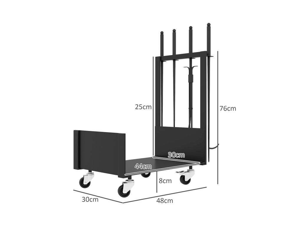 Zásobník na krbové dřevo s kolečky 48 x 30 x 76 cm | černý