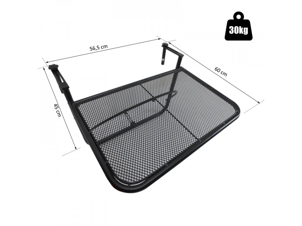 Závěsný balkonový stolek 60 x 57 x 45 cm | černý